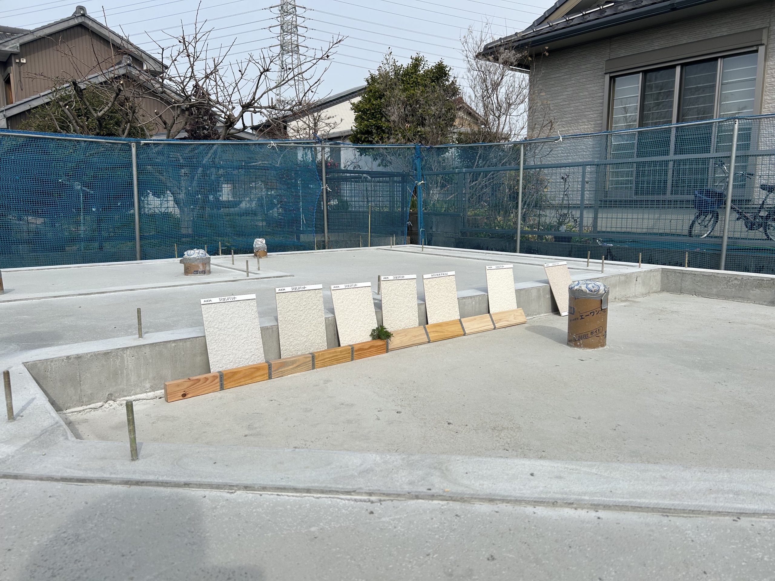 基礎工事も終わり、外壁やサッシ、屋根の色味を内装や店舗ロゴと